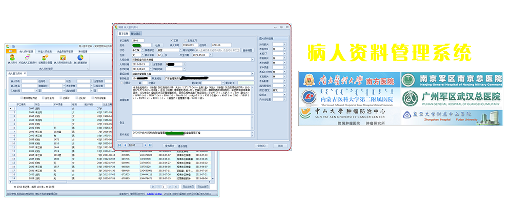 軟件支持對病人基本情況、手術情況、隨訪情況等方面信息的管理,根據不同的科室的數據管理要求進行不同的定制,軟件界面大方美觀, 具有良好的穩定性和友好性,已經成功運行在多家大型醫院科室的管理中,獲得眾多客戶的好評和信賴。